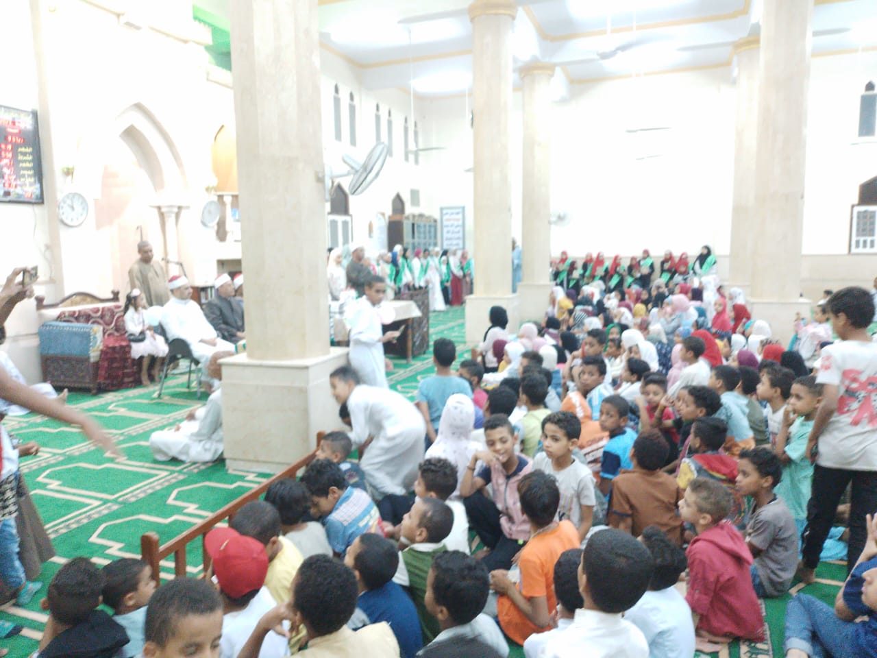 حدبدء الحفل بتلاوة قرآنية لفضيلة الشيخ محمد إبراهيم الخواجا، ثم كلمة ترحيب للحضور ألقاها أمام المسجد شكر فبها الحضور والأطفال المكرمين، وأولياء أمورهم، مؤكدا أنه من لا يشكر الناس لا يشكر الله سبحانه وتعالى، حيث شكر أهالى المنطقة، والمساهمين والقائمين على تنظيم الحفل، كما تخلل الحفل عدة فقرات للانشاد الدينى للأطفال الفائزين بالمسابقة.