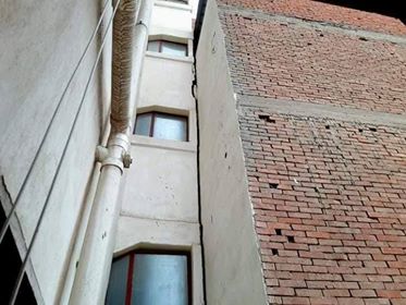 يذكر أن العقار صادر له ترخيص عام ٢٠١٢ على مساحة ٣٧٠متر مربع دور ارضى ودور مسحور و٦ طوابق علويه ، وتم مخالفة شروط الترخيص بإضافة أربعه طوابق جديده الأمر الذى أدى بمرور الوقت إلى إحداث تشققات وميول بالعقار .