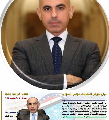 مع انطلاق مرحلة الدعاية لمرشحي المرحلة الثانية لبرلمان ٢٠٢٥، ينظم رجل الأعمال المهندس إيليا ذكى، مؤتمرا جماهيريا لمرشح حزب مستقبل وطن للدائرة محمد عبدالرحمن راضي في السابعة والنصف مساء الجمعة المقبلة ، إيماناً منه لاستكمال مسيرة ممتدة في العمل الخدمي بمنطقة روض الفرج وشبرا وبولاق أبوالعلا..