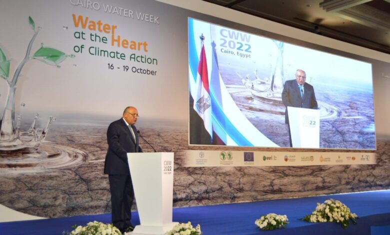 وصرح السفير أحمد أبو زيد المتحدث الرسمي باسم وزارة الخارجية، بأن الوزير شكري القى كلمة أعرب فيها عن الترحيب بالحضور في أسبوع القاهرة للمياه والذي ينعقد هذا العام في توقيت ذو أهمية خاصة، في إطار الاستعدادات لعقد الدورة السابعة والعشرين لمؤتمر أطراف اتفاقية الأمم المتحدة الاطارية لتغير المناخ COP27 الذي تستضيفه مصر في شرم الشيخ في نوفمبر القادم، ومؤتمر الأمم المتحدة للمياه المقرر عقده في مارس ٢٠٢٣.