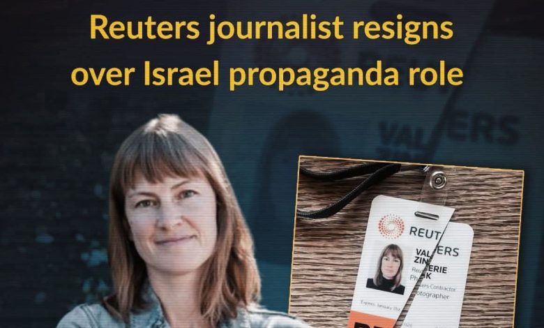 أعلنت المصوّرة الصحفية الكندية فالييري زينك استقالتها من وكالة رويترز بعد ثماني سنوات من العمل، وذلك احتجاجًا على ما وصفته بـ”تواطؤ الوكالة مع الدعاية الإسرائيلية” وتبريرها المتكرر لجرائم قتل الصحفيين في غزة.