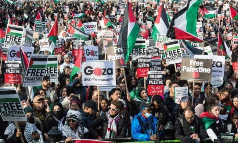 مظاهرات حاشدة دعما للفلسطينيين في مدن بريطانية وأمريكية واسترالية