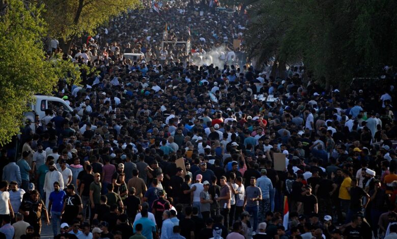 واحتشد المحتجون في بغداد وسط إجراءات أمنية مشددة جرى خلالها إغلاق الجسور المؤدية إلى المنطقة الخضراء التي تضم العديد من السفارات الأجنبية بعد محاولة المحتجين الوصول إلى السفارة الدنمركية في الساعات الأولى من صباح يوم السبت.