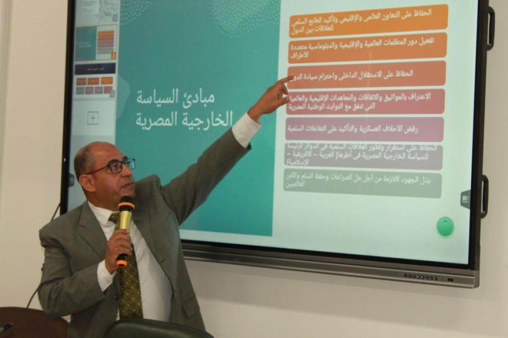 وأشاد الدكتور علاء عبد الحفيظ بثورة 30 يونيو، التي حافظت على استقرار الوطن وأمنه القومي، مشيراً إلى أن السياسة الخارجية المصرية بعد 30 يونيو، شهدت نشاطاً كبيراً، وهدفت إلى مساندة الدولة الوطنية، والحفاظ على سيادتها، ومكافحة الإرهاب برؤية متكاملة على المستوى الدولي، واستعادة التوازن في علاقتها مع القوى الكبرى، والدوائر العربية، والأفريقية، والآسيوية، ودائرة شرق البحر الأبيض المتوسط.
