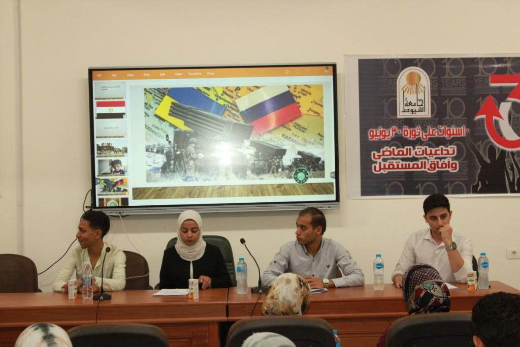 ثورة 30 يونيو وتوجهات السياسة المصرية نحو القضايا الإقليمية والعالمية والتي نظمها نموذج محاكاة مجلس الأمن التابع للأمم المتحدة بإدارة رعاية شباب الكلية