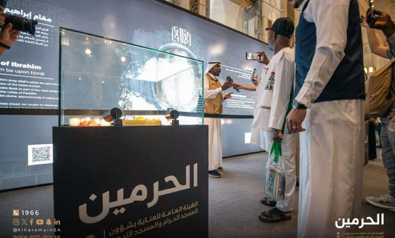 ويقع المعرض في المسجد الحرام بالتوسعة السعودية الثالثة – مقابل باب الملك عبدالله -رحمه الله- [باب 100]