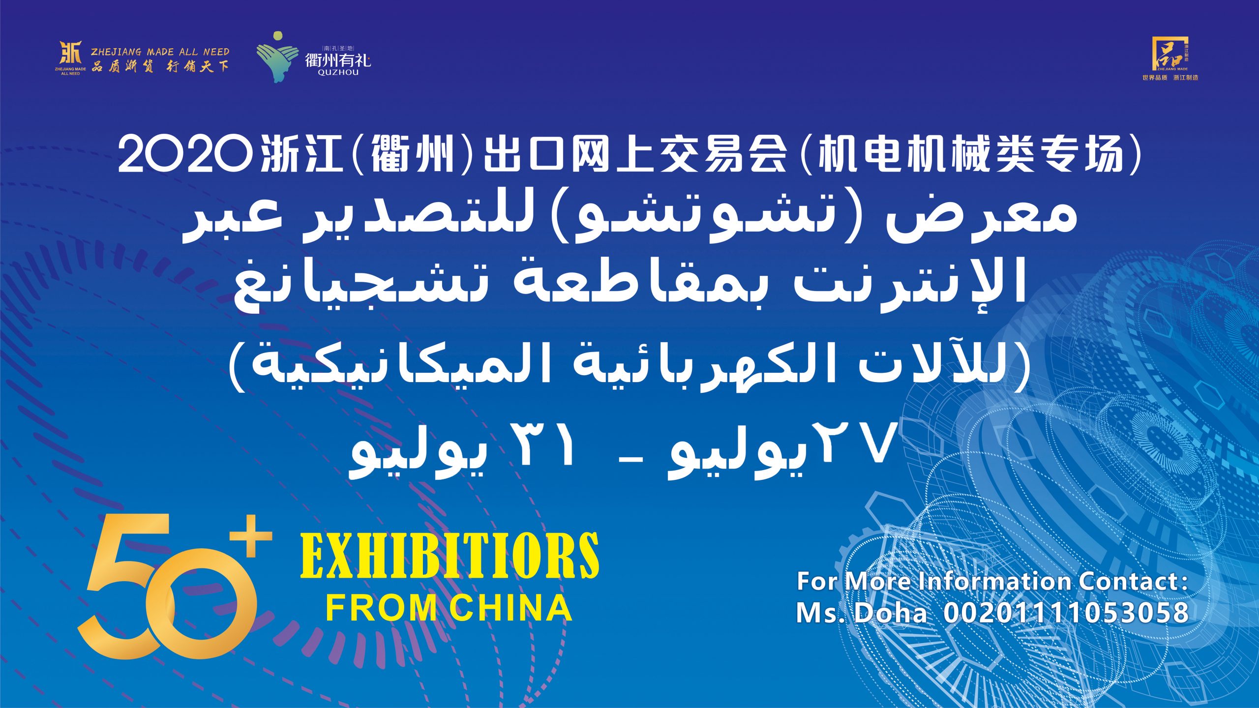 انطلقت عبر الانترنت المحطة الأولى لفعاليات معرض (تشوتشو) تشجيانغ 2020 للتصدير عبر الإنترنت، والمخصص للمكائن والمعدات الكهروميكانيكية في مصر، تحت رعاية وتنظيم المجلس الصيني لترويج التجارة بمدينة تشوتشو، بالاشتراك مع شركة تشجيانغ يواندا المحدودة للمؤتمرات والمعارض الدولية.