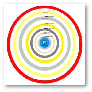 شكل (2): وصف نموذج الألوسي لبنية السماوات والأرضين المتوافق مع نموذج السمان (2017).