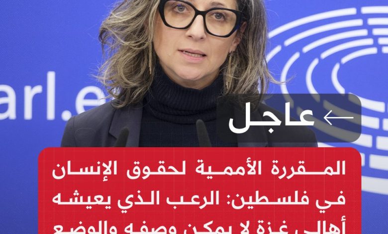 وكررت المقررة الأممية دعوتها، في تصريحات صحفية في الأردن إلى “وقف فوري لإطلاق النار في غزة، وإنهاء السيطرة الإسرائيلية غير القانونية على غزة والأراضي الفلسطينية المحتلة، ونشر قوات لحفظ السلام والاستقرار في المنطقة”.