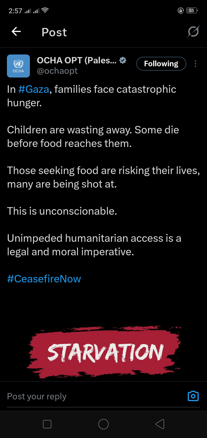 مكتب الأمم المتحدة لتنسيق الشؤون الإنسانية (أوتشا) :أطفال غزة يموتون قبل وصول الطعام مع استمرار عدوان الاحتلال