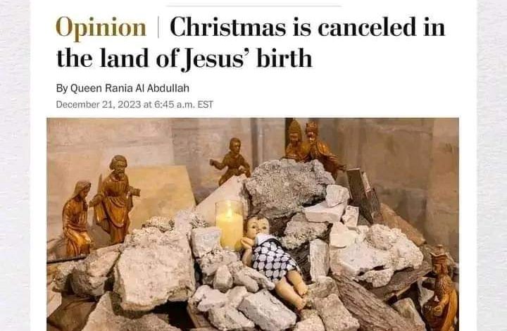 نشرت صحيفة (واشنطن بوست) الأمريكية أمس الخميس مقالاً بقلم جلالة الملكة رانيا العبدالله ملكة الأردن بعنوان (في أرض ميلاد المسيح ألغيت احتفالات العيد المجيد) تحدثت فيه عن الخسائر المأساوية في غزة، مشددة على أن المطالبة بوقف إطلاق النار هو أقل ما يمكن القيام به.