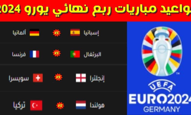 مواعيد مباريات ربع نهائي يورو 2024 بتوقيت مصر والسعودية والقنوات الناقلة