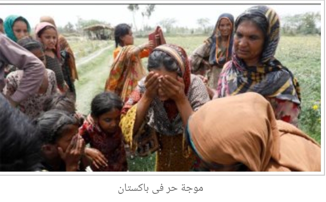 شهدت باكستان موجات حر شديد، بسبب التغير المناخى التى تشهده المنطقة أدى ارتفاع درجات الحرارة إلى خسائر كبيرة فى الأرواح وإتلاف المحاصيل ونفوق الحيوانات، وذلك حسب ما نشر موقع وكالة الأنباء رويترز صورا.