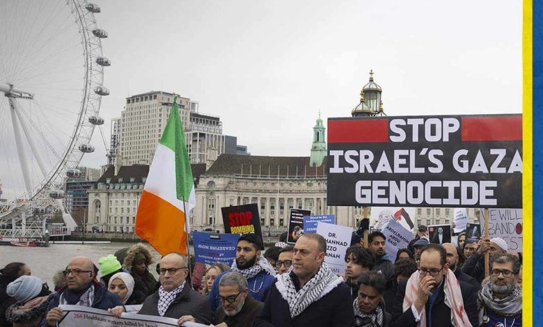 *مسيرة في العاصمة البريطانية لندن من أمام مستشفى توماس نحو مقر رئاسة الوزراء للمطالبة بوقف الحرب الإسرائيلية على غزة، وقد شارك عاملون في المجال الصحي بالتظاهرة بزيهم الرسمي رافعين لافتات تحمل أسماء وألقاب زملائهم الذين قتلهم جيش الاحـ.ـ ـتلال الإسرائيلي في غزة .