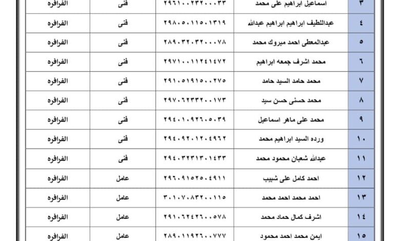 مياه أسيوط : أسماء المقبول تظلمهم بــوظائف مهندس وفنى وعامل بقطاع الوادي الجديد