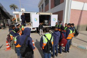 وفى ذلك الاطار شهدت ورشة الاصلاح المتنقلة لأعمال الطوارئ تدريبات عملية لأبناء المدرسة الفنية للمياه للتعرف في البداية على مختلف المعدات التى تضمها الورشة من ماكينة لحام بولي اثيلين وكبلات كهربائيةوطلمبات غاطس بأحجام مختلفة وصواريخ بأنواعها و هيلت ومفاتيح بشتى أنواعها
