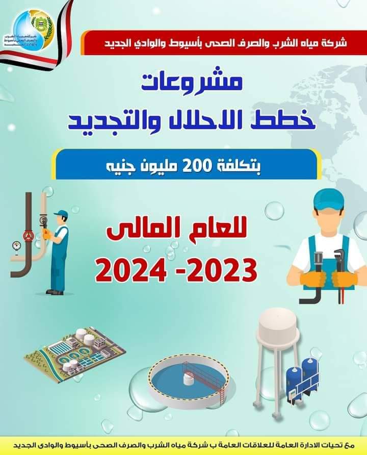 وناقش الاجتماع مقترحات الخطة المالية الجديدة في ضوء الاحتياجات الفعلية لكافة مناطق الشركة بأسيوط والوادي الجديد والتي جاء من بينها إحلال وتجديد شبكات مياه ومحطات صرف صحي بمحافظة أسيوط، واحلال وتجديد محطات تنقية مياه ومحطات رفع صرف صحي بمحافظة الوادي الجديد هذا بجانب توريد طلمبات ومحولات كهربائية قدرة 500 ك.ف.أ هذا بجان توفير أهم الاحتياجات اللازمة لتعزيز الحملة الميكانيكية وعمل إحلال وتجديد لرفع كفاءة معدات الشركة وذلك بقيمة تقديرية بلغت 200 مليون جنيها قابلة للزيادة كتصور مبدئي للخطة الجديدة.