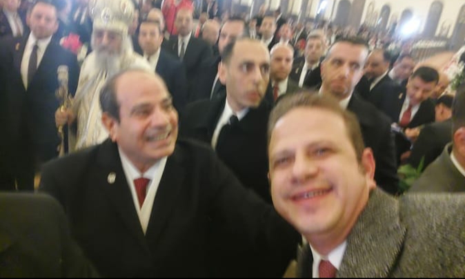 م. رامى غالى يوثق لحظة مُصافحة الرئيس السيسي في قداس عيد الميلاد