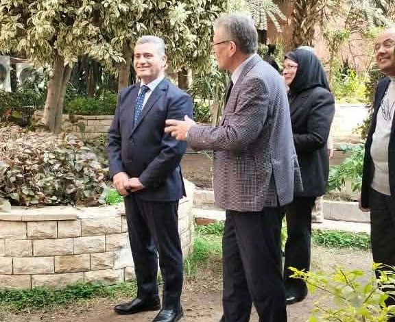 وأعرب ‘ عاشور’ عن بالغ اعجابه بالمستوى المتميز لتنسيق الحدائق بالكلية وما تتضمنه من أشجار مثمرة ونباتات متنوعة تعكس رؤية واضحة نحو الاستدامة والحفاظ على البيئة مشيدا بالجهود المبذوله لتحويل المساحات الخضراء الى نموذج فعال يجمع بين الجمال والفائدة البيئية،