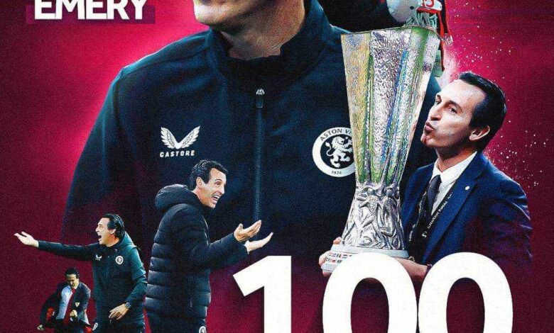 نادي استون فيلا يحتفل بحصد مدربه أوناي إيمري 100 انتصار أوروبي