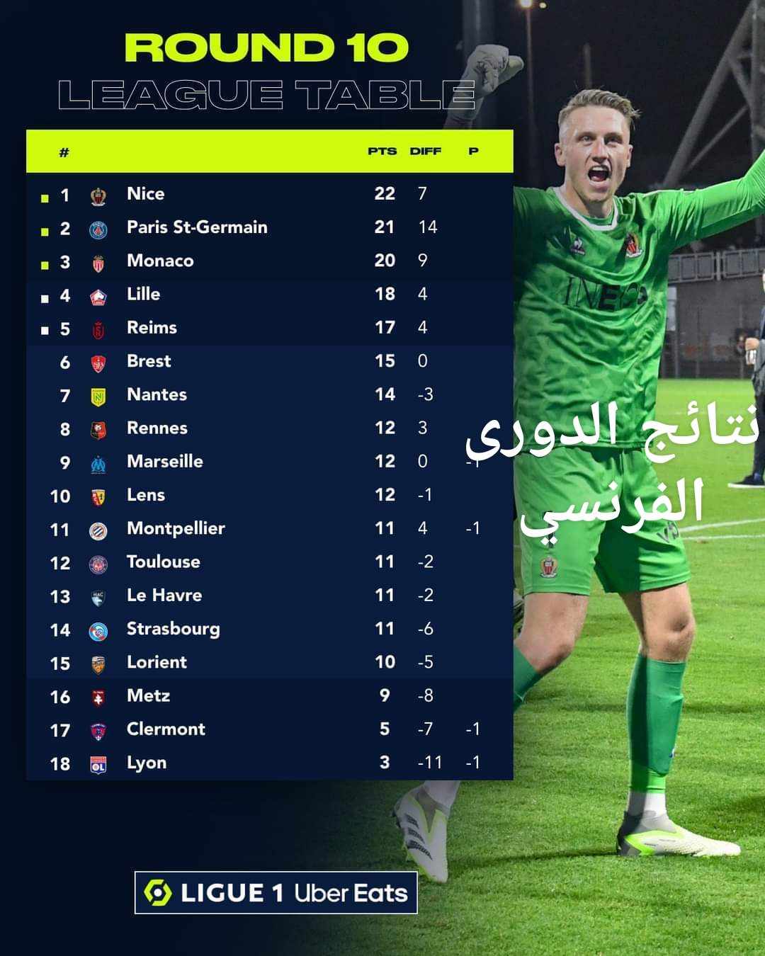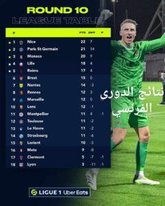 مازال نادي نيس متصدر ونادي العاصمة باريس سان جيرمان في المركز الثاني