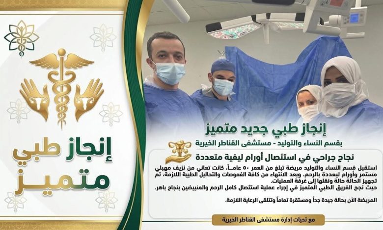 في إنجاز طبي جديد يعكس كفاءة المنظومة الصحية بمحافظة القليوبية، نجح فريق طبي متخصص بمستشفى القناطر الخيرية العام في إنقاذ حياة مريضة تبلغ من العمر 50 عاماً. كانت المريضة تعاني من حالة طبية حرجة نتيجة أورام ليفية متعددة، مما تطلب تدخلاً جراحياً عاجلاً لإنهاء معاناتها مع النزيف المستمر وتجنب المضاعفات الخطيرة.