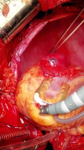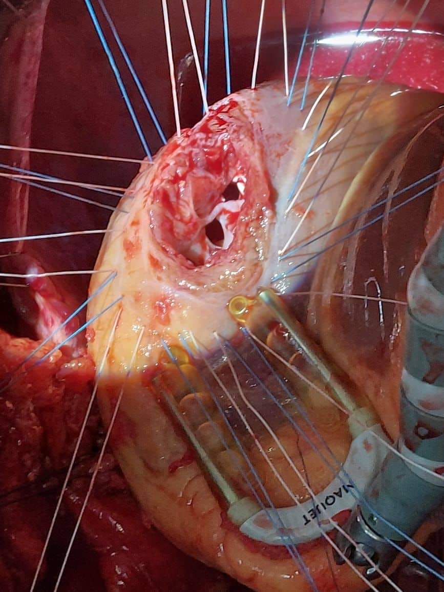شأنه تم تجهيز المريض ونقله إلي وحدة العمليات الخاصة بقسم جراحة القلب والصدر بمستشفي القلب الجامعي وتم إجراء عملية قلب مفتوح لإزالة الجزء المتمدد والمتمزق من القلب وإصلاح القلب , مشيراً إلي أنه تم نقل المريض إلي وحدة الرعاية المركزة الخاصة بقسم جراحة القلب والصدر حتي إستقرت حالة المريض وتم خروج المريض إلي منزله بصحة جيدة عقب إجراء الجراحة بحوالي ستة أيام , مصرحاً أن هذه العملية تعتبر من العمليات الدقيقة والصعبة جداً وذات نسب نجاح ضئيلة جداً نظراً للوضع الصحي السئ لمرضي هذا النوع من الأمراض .