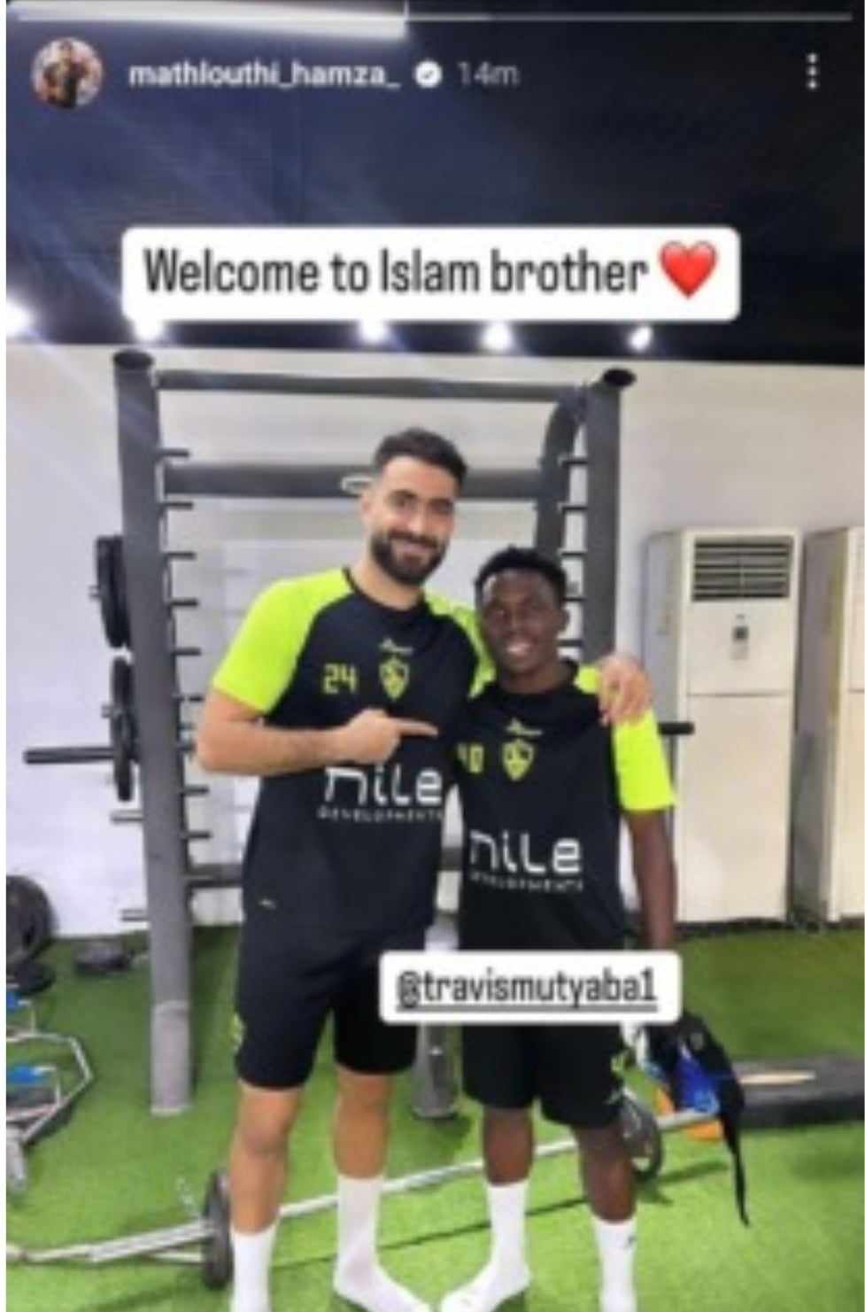 وتعبيرا عن سعادته بهذا الخبر نشر اللاعب التونسي المحترف فى صفوف الزمالك عبر الاستوري على حسابه الشخصى بمواقع التواصل الاجتماعى وعلق قائلا ” مرحبا بك فى الاسلام ياأخى .