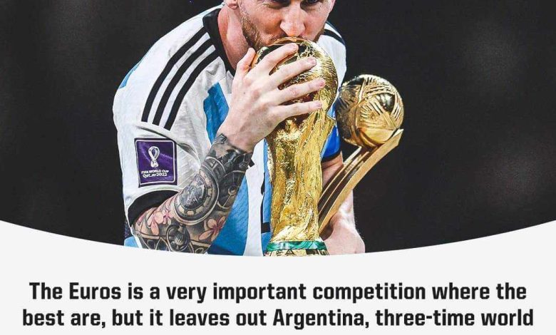 وأضاف ميسي: “كأس أوروبا مهمة للغاية، لكنها تستبعد الأرجنتين، بطلة العالم ثلاث مرات، والبرازيل، بطلة العالم خمس مرات، وأوروجواي، بطلة العالم مرتين”.