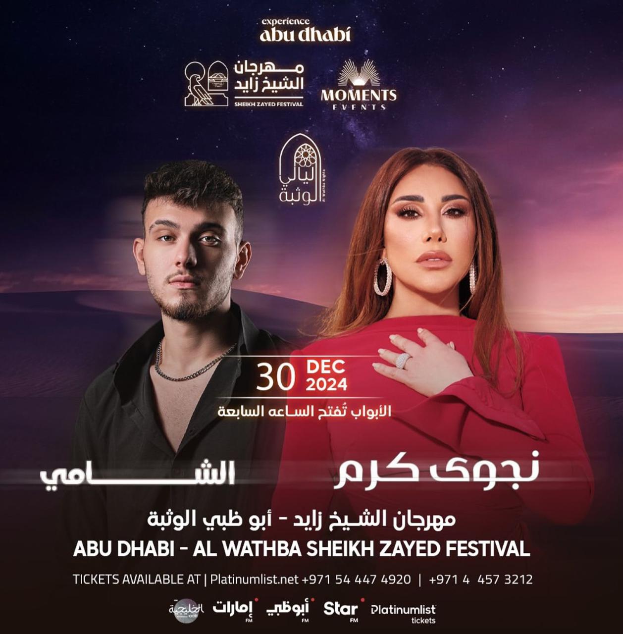 تنطلق الجولة الغنائية العربية والعالمية بحفلين استثنائيين في دولة الإمارات العربية المتحدة، من على مسرح دبي أوبرا يوم 29 ديسمبر 2024، حيث ستشدو نجوى بأجمل أغنياتها وسط أجواء فنية راقية، يلي ذلك حفل ثاني في أبوظبي ضمن فعاليات مهرجان الشيخ زايد 2024 يوم30 ديسمبر 2024، بمشاركة الفنان الشامي، ليقدما معًا سهرة مليئة بالطرب والإبداع.