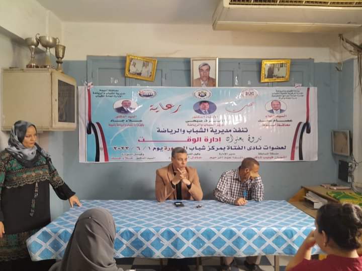 وبالتعاون مع الإدارة المركزية لتنمية الشباب والإدارة العامة للبرامج التطوعية والكشفية الإدارة العامة لأندية الفتاة ندوة تثقيفية تحت عنوان اداره الوقت بمركز شباب البورة بإدارة شباب أسيوط وبمشاركة 30 فتاة من اعضاء نادى الفتاة بالمركز
