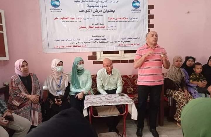 نظمت أمانة المرأة بحزب مستقبل وطن بمركز ساحل سليم بمحافظة أسيوط ندوة تثقيفية تحت عنوان مرض التوحد الأعراض الأسباب والعلاج بقرية الشامية