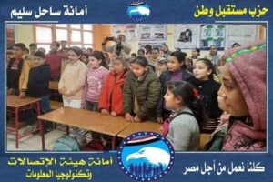يأتى ذلك فى إطار المشاركة المجتمعية لحزب مستقبل وطن برئاسة المستشار عبدالوهاب عبدالرازق رئيس الحزب والمهندس أشرف رشاد الأمين العام والنائب الأول لرئيس الحزب والمهندس ياسر عمر أمين الحزب بالمحافظة وكيل لجنة الخطة والموازنة بمجلس النواب والدكتور على مهران الامين المساعد ورئيس لجنة الصحة بمجلس الشيوخ ومحمود معوض نفادى أمين التنظيم بالمحافظة والمهندس أحمد عبد السلام أمين أمانة الإتصالات وتكنولوجيا المعلومات بالمحافظة وعمرو جمال أمين الحزب بساحل سليم ، وأحمد شوقى أمين أمانة الإتصالات وتكنولوجيا المعلومات