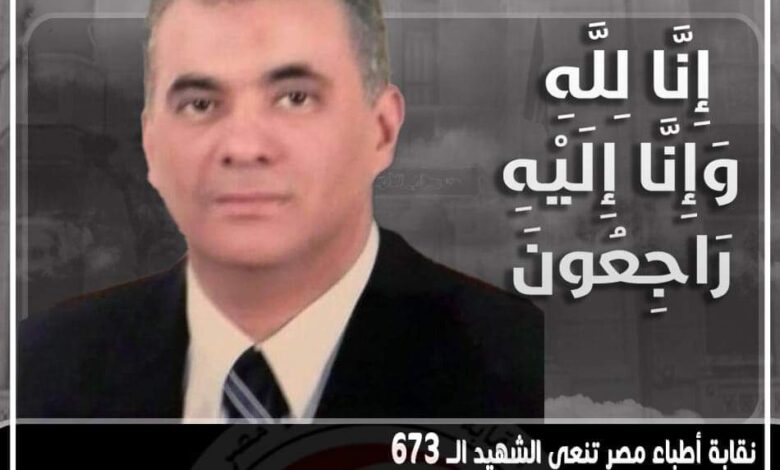 نقابة الأطباء تنعى الشهيد الدكتور مدحت محمد الحسيني.