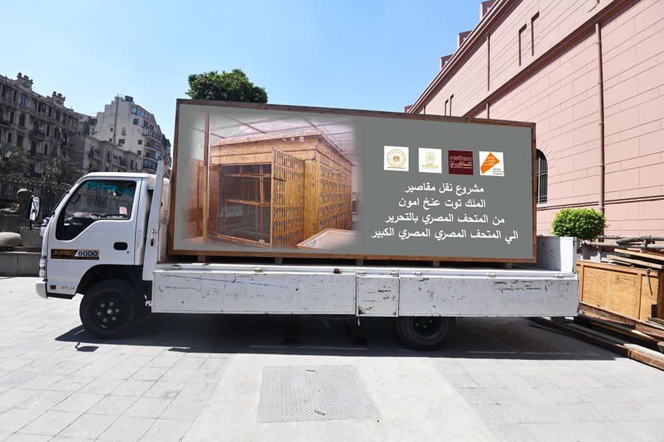 استقبل المتحف المصري الكبير المقصورة الأولى للملك توت عنخ آمون قادمة من المتحف المصري بالتحرير لتعرض بمكان عرضها الدائم بالمتحف.