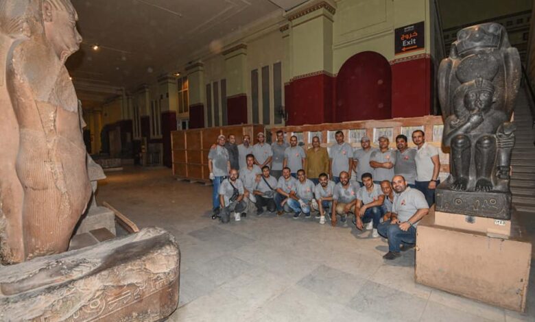 هذا وقد ضم فريق العمل مجموعة متميزة من المرممين بالمتحف الكبير والمتحف المصري بالتحرير.