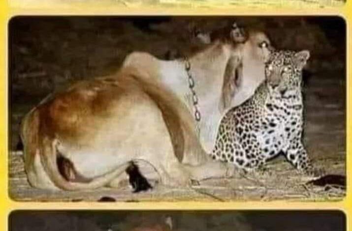 نمر يتسلل كل ليلة ليزور البقرة التي أرضعته بعد موت أمه