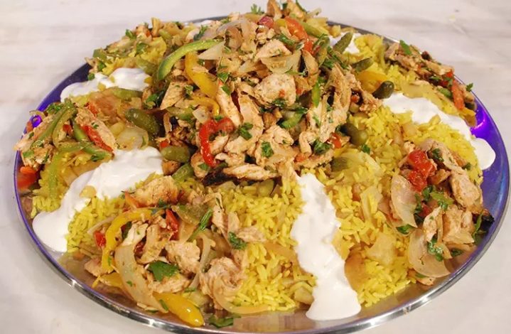 للشاورما نتبلها باضافه التوابل للزبادي ماعدا السماق ونقع الفراخ فيها لمدة ليلة كاملة او اقل تقدير ساعه نضع الفراخ في طاسه فيها زيت ساخن لحد ماتبتدي تستوي نضيف الفلفل والبصل بعد تقليبه مع السماق وتركه لربع ساعه وفي النهاية نضيف البقدونس للارز نغسل الارز جيدا ولو بسمتي ننقعه نص ساعه