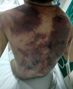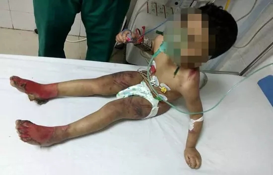 وبعد محاولات المستشفى من ادخاله العناية المركزة ومحاولات انعاش قلبه وافاقته قال الطفل المسكين : أن أمه تضربه بالشبشب والخرطوم هي وزوجها ويعذبونه بلسعه بالنار الملتهبة في الصدر والبطن والقدمين بسبب تبوله اللا إرادي…
