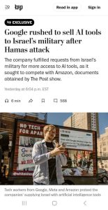 كشفت وثائق مسربة تفاصيل صادمة عن مشاركة شركات تقنية أمريكية كبرى، مثل مايكروسوفت، وأمازون، وجوجل، في دعم جيش الاحتلال الإسرائيلي خلال العدوان على غزة. الوثائق التي تم الكشف عنها تسلط الضوء على تقديم هذه الشركات دعمًا تقنيًا وأدوات حوسبة سحابية وذكاء اصطناعي ساهمت في الأنشطة العسكرية، مما جعلها شريكًا أساسيًا في الإبادة الجماعية بغزة.