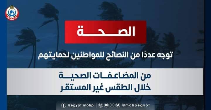 وزارةالصحة توجة عددًا من النصائح للمواطنين لحمايتهم من المضاعفات الصحية خلال الطقس غير المستقر