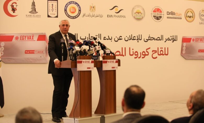 أعلن د. خالد عبدالغفار وزير التعليم العالي والبحث العلمي والسيد القصير وزير الزراعة واستصلاح الأراضي مساء اليوم الثلاثاء عن بدء التجارب السريرية للقاح المصري إيجي فاكس (Egyvax) المضاد لفيروس كورونا المستجد (كوفيد 19)، وذلك خلال المؤتمر الصحفي الذي تم تنظيمه بحضور د. تامر عصام رئيس هيئة الدواء المصرية، واللواء د.خالد عامر رئيس مركز البحوث الطبية والطب التجديدي بالقوات المسلحة، وذلك بأحد الفنادق الكبرى بالقاهرة.