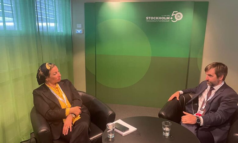 التقت الدكتورة ياسمين فؤاد وزيرة البيئة مع السيد ستيفن جيلبول وزير البيئة وتغير المناخ بكندا لبحث آليات التعاون المشترك في ملفي المناخ والتنوع البيولوجي، خلال مشاركتها في مؤتمر ستوكهولم +50 والذى تنظمه الجمعية العامة للأمم المتحدة بالسويد، حيث استعرضت وزيرة البيئة المصرية عدد من الإجراءات التي تتخذها مصر في مسار الاستعداد لاستضافة مؤتمر المناخ القادم COP27، ومنها إطلاق الموقع الالكترونى للمؤتمر منذ ايام قليلة لتسهيل عملية المعرفة والتواصل بشأن المؤتمر.