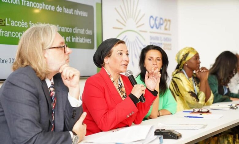 وأشارت وزيرة البيئة إلى اهتمام مصر بشواغل الدول الفرنكوفونية ومنها عدد كبير من الدول الأفريقية، متحدثة نيابة عن أفريقيا التي لا تصل إلا ل ٣٪ فقط من التمويل السنوي للمناخ، كما ذكر تقرير ٢٠١٩/٢٠٢٢ الذي قدر حوالى ٦٣٢ مليار دولار خصصت لجنوب صحراء أفريقيا، موضحة أن ٧٠٪ من البشر حول العالم ممن لا يستطيعون الوصول للكهرباء في ٢٠٢٢ يتمركزون في إفريقيا، مما يؤكد حتمية وصول القارة لتمويل المناخ وضرورة عمل الدول المتقدمة على حلول الحياد الكربوني، وتبعا للتقرير الحالي لمبادرة سياسة المناخ فإن التقدير الحقيقي لتمويل المناخ المتاح لأفريقيا على المستويين الوطني والعالمي هو ٣٠ مليون دولار وهو ما يمثل ١٢٪ مما تحتاجه أفريقيا فعليا لتنفيذ خططها من ٢٠٢٢ وحتى ٢٠٣٠.