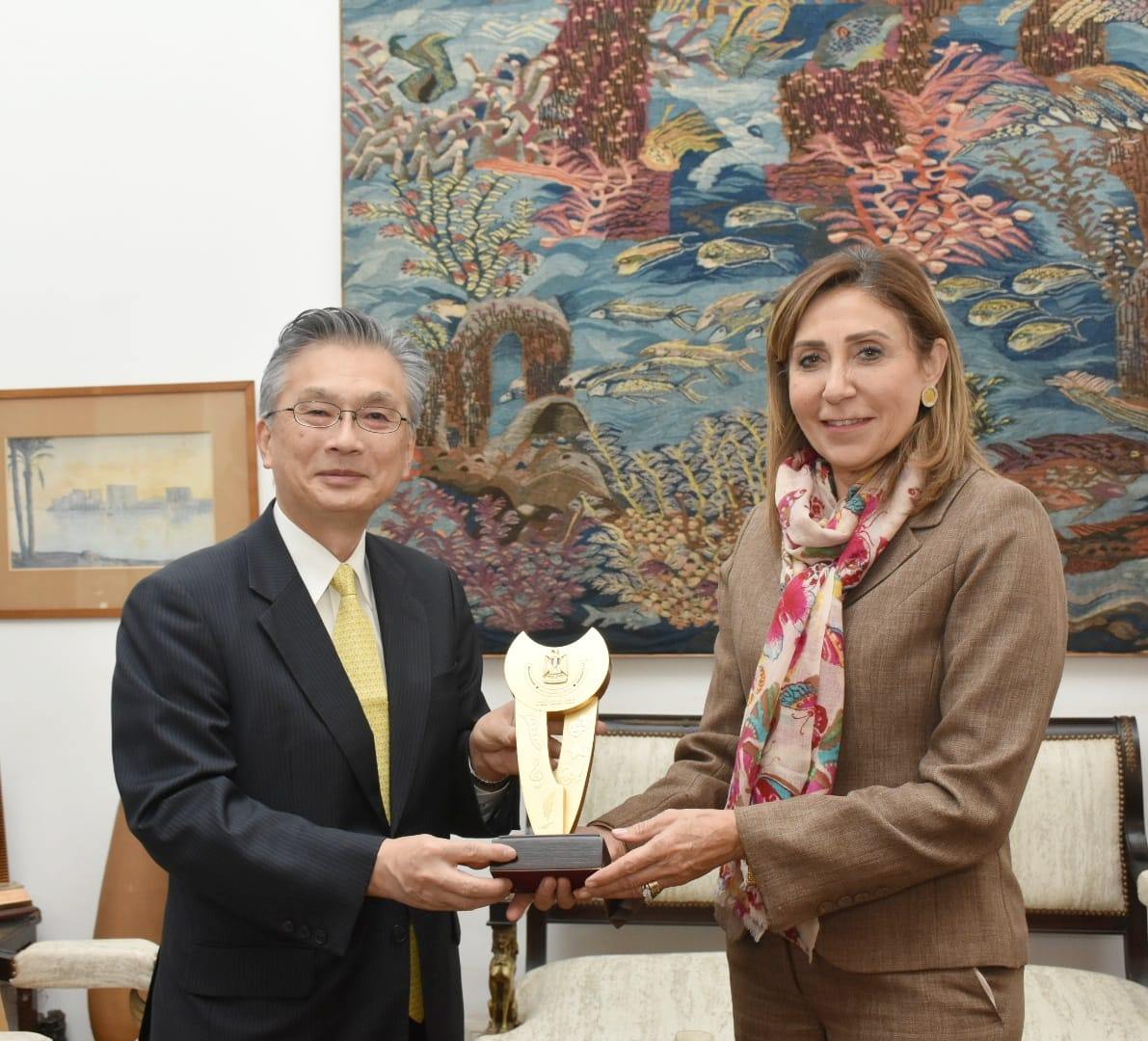 وزيرة الثقافة تبحث مع سفير اليابان بالقاهرة أطر التعاون الثقافي بين البلدين