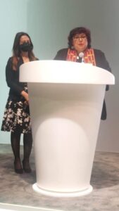 وذكر بيان صادر عن وزارة الثقافة اليوم أن الفنانة الدكتورة ايناس عبد الدايم ألقت الكلمة الافتتاحية في اولي الجلسات متناولة طه حسين الشخصية المحورية للمعرض وقالت خلالها اسمحوا لي في البداية وباسم المبدعين والمثقفين المصريين أن أتقدم إليكم بخالص التعازي والمواساة في وفاة المغفور له بإذن الله سمو الشيخ خليفة بن زايد رحمه الله الذي فقدناه نموذجاً للعمل الوطني المخلص الجاد، ورمزاً لخدمة العروبة والإنسانية ، وتقدمت بخالص التهاني للشيخ محمد بن زايد على ثقة شعب الإمارات في توليه الحكم ، وتابعت انه إذا كانت الذكرى والإخلاص في العمل هي ما يتبقى من العظماء فإننا نجتمع اليوم حول ذكرى واحداً من عظماء تاريخ الأدب العربي وهو الأديب والمفكر العظيم الدكتور طه حسين عميد الأدب العربي الحديث ذلك النموذج الذي فتح افاق العقول للتحرر من أسر التخلف والجهل.