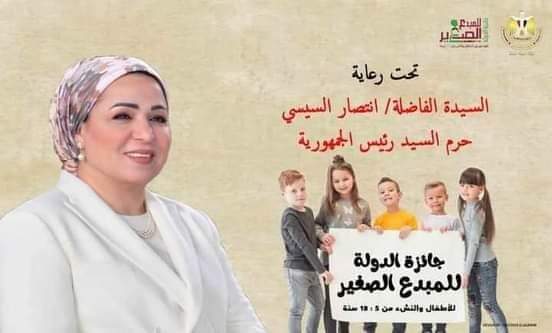 تحت رعاية انتصار السيسي حرم رئيس الجمهورية تعقد إيناس عبد الدايم وزيرة الثقافة مؤتمرا صحفيا في الواحدة ظهر الاحد 27 يونيو بالمسرح الكبير بدار الاوبرا المصرية للاحتفال باعلان اسماء الفائزين بجائزة الدولة للمبدع الصغير وذلك بحضور هشام عزمي امين عام المجلس الاعلي للثفافة واعضاء اللجنة العليا للجائزة الدكتورة سحر السنباطى أمين عام المجلس القومى للأمومة والطفولة والدكتورة رشيدة الشافعى والمهندس زياد عبد التواب والكاتبة فاطمة المعدول والتشكيلي الكبير محمد عبلة والدكتور محمد المنسى قنديل والكاتب الكبير يعقوب الشارونى والدكتور مجدى صابر رئيس دار الأوبرا المصرية والكاتب محمد عبد الحافظ رئيس المركز القومى لثقافة الطفل والمستشار محمد الموافى نائب رئيس مجلس الدولة ورئيس إدارة الفتوى لوزارة الثقافة و اعضاء لجان التحكيم والفرز في مختلف فروع الجائزة