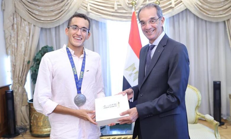 وزير الإتصالات يكرم الطالب محمد الجندى لفوزه بفضية العالم للخماسى الحديث