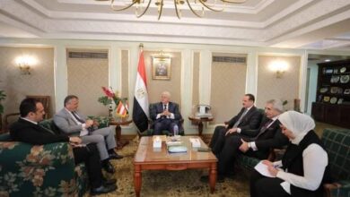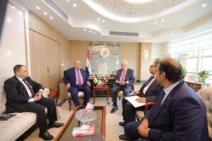 رئيس الإدارة المركزية لشئون الطلاب الوافدين والدكتورإياد أبو الهنود مسئول الشئون الأكاديمية والبحثية بسفارة دولة فلسطين بالقاهرة لبحث سبل التعاون المشترك بين البلدين الشقيقين في مجال التعليم العالي والبحث العلمي وذلك بمبنى التعليم الخاص بالقاهرة الجديدة.