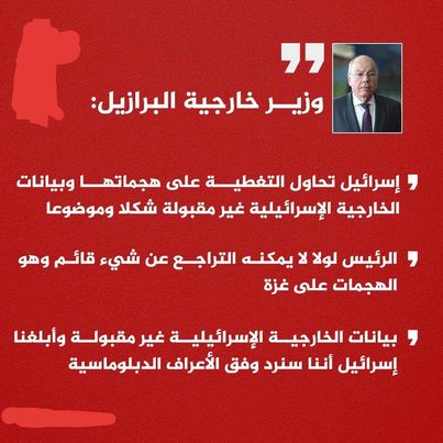 وزير الخارجية البرازيلي يؤكد كلام رئيس البرازيل ويرفض الإعتذار لاسرإئيل